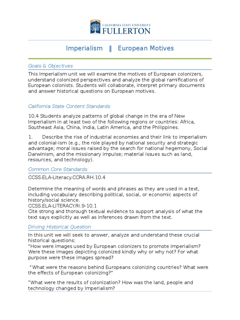 Colonies often had resources that imperialistic countries needed to make products. Different motives of the new imperialism. Start studying 6 motives of imperialism. Analyzing imperial motives and draw a simple symbol to represent each motive. Analyzing motives of imperialism l economic: